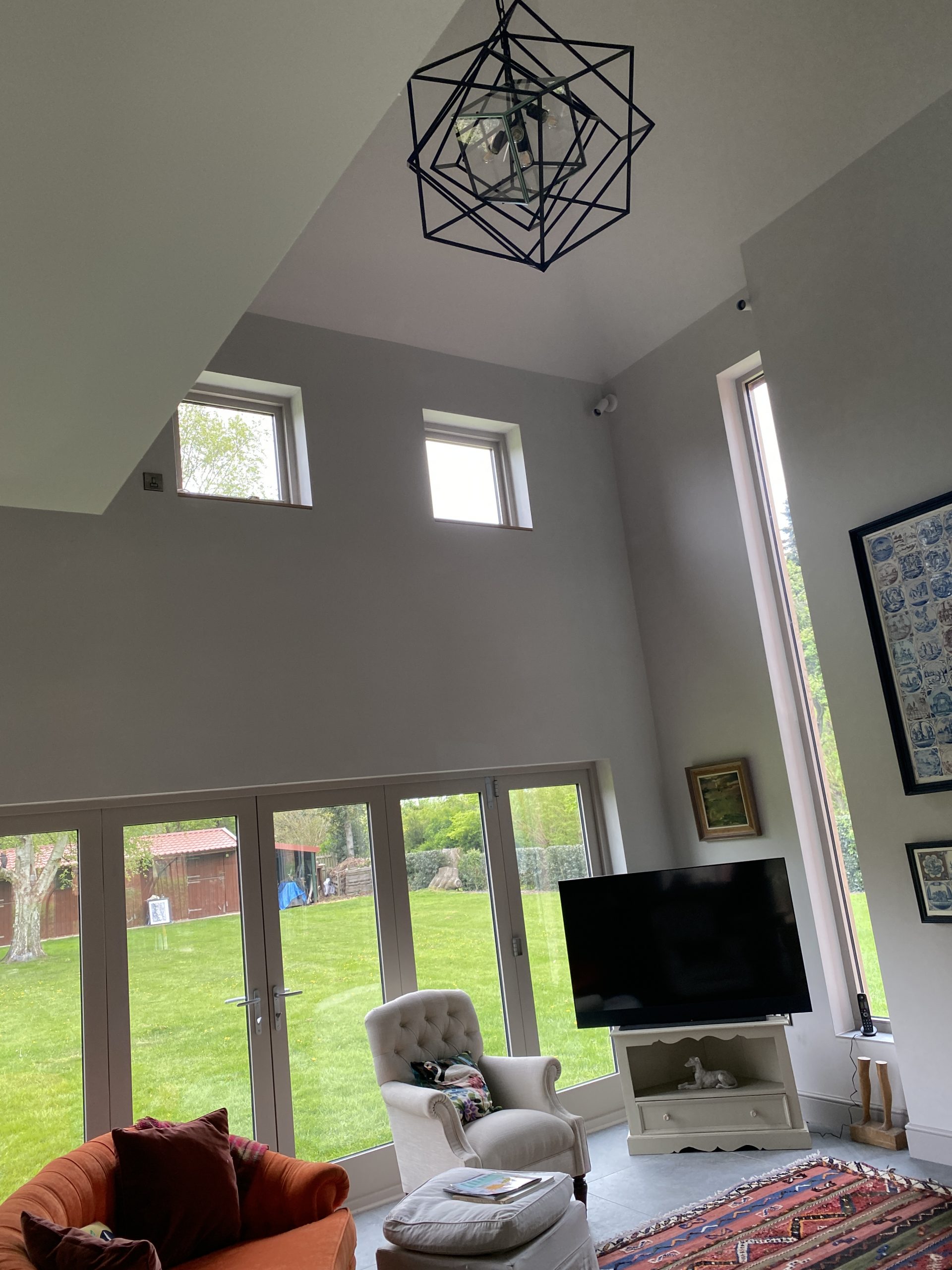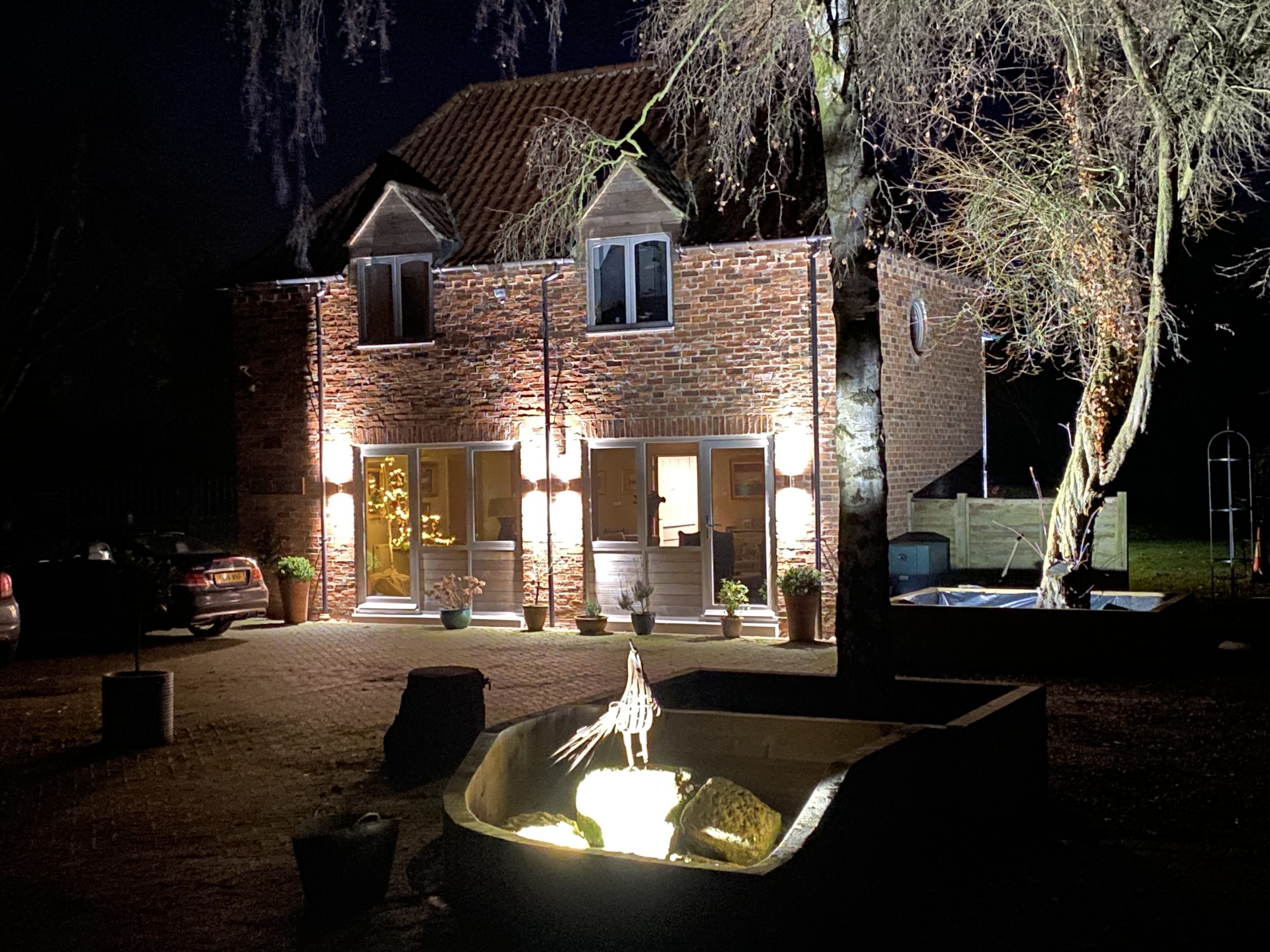 This super contemporary Architect designed family house with steel frame construction, cedar walls and zinc roof required a state of art lighting scheme with smart control. Each room is zoned and there is a dedicated art gallery requiring a bespoke lighting scheme. The client wanted the ambiance of lighting to change depending on how the rooms were to be used. There is a mixed underfloor and wet heating system together with domestic hot water generation with 3 on-suite bedrooms with zoned control with traditional and smart control via an app. There is security lighting and zoned exterior lighting for the entrance driveway and courtyard