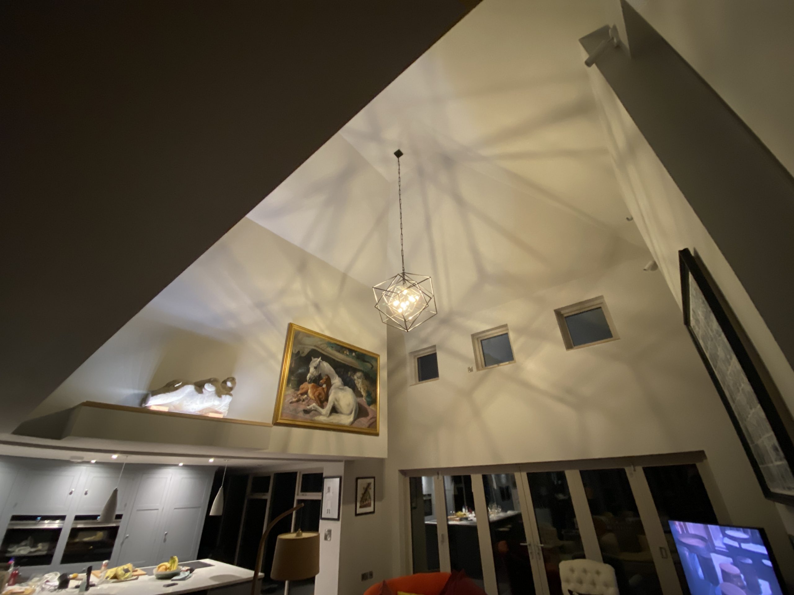 - Designer central light with dimmer control and LED sensor controlled stair lighting